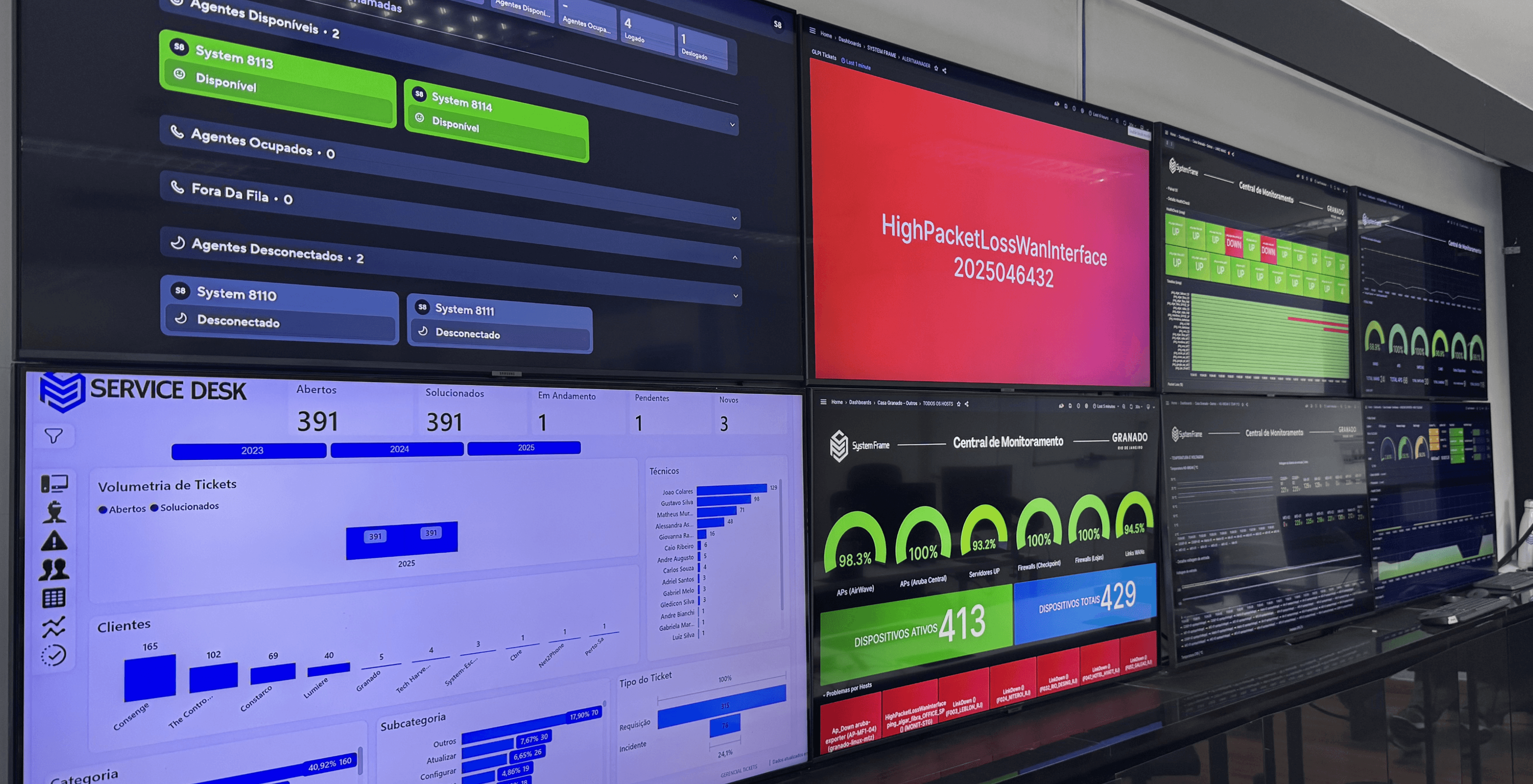 O NOC System Frame monitora toda a cadeia de TI, de infraestrutura ao comportamento da rede, de aplicações à nuvem, de IoT à segurança. De forma integrada, contínua e inteligente.